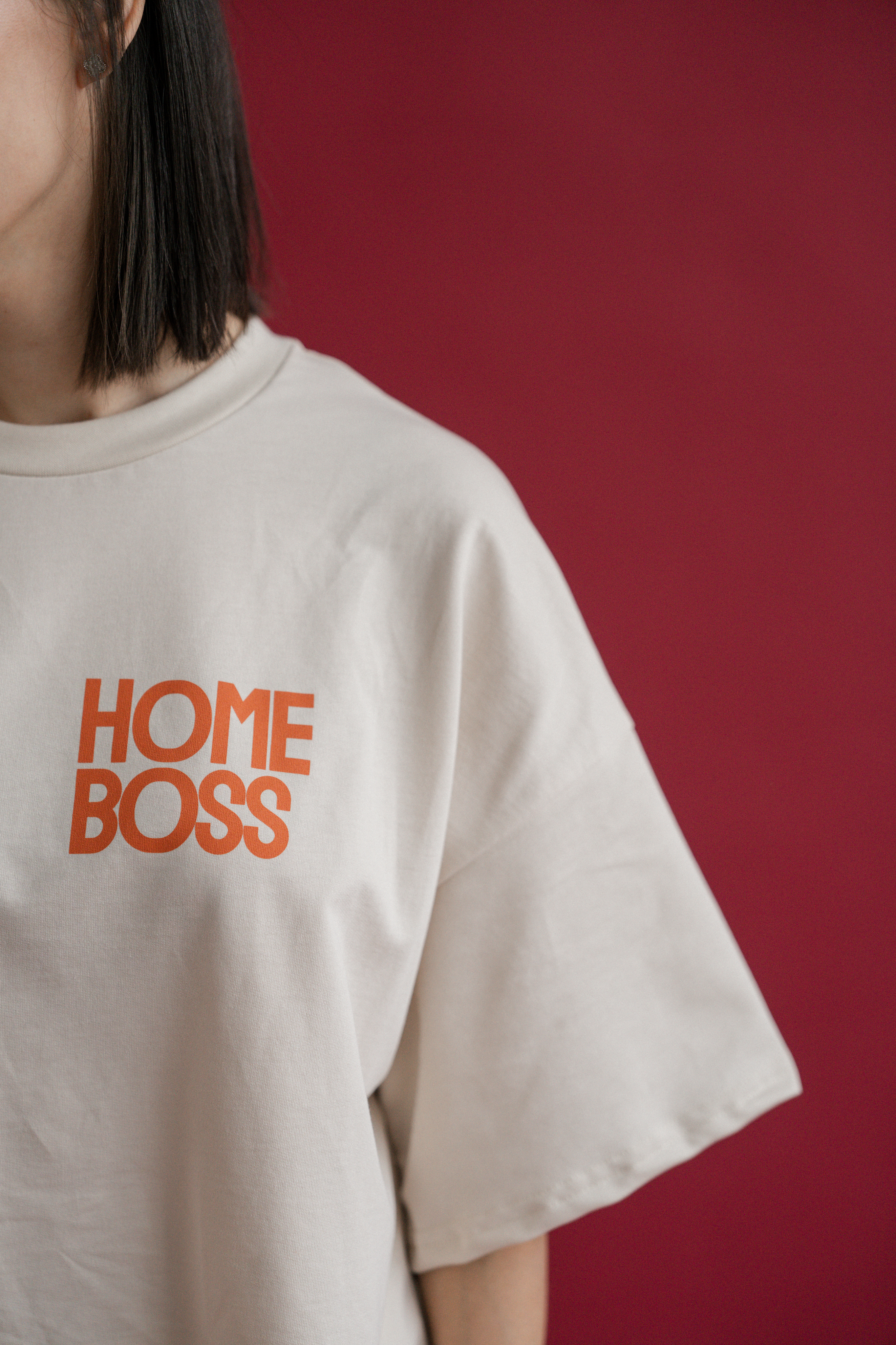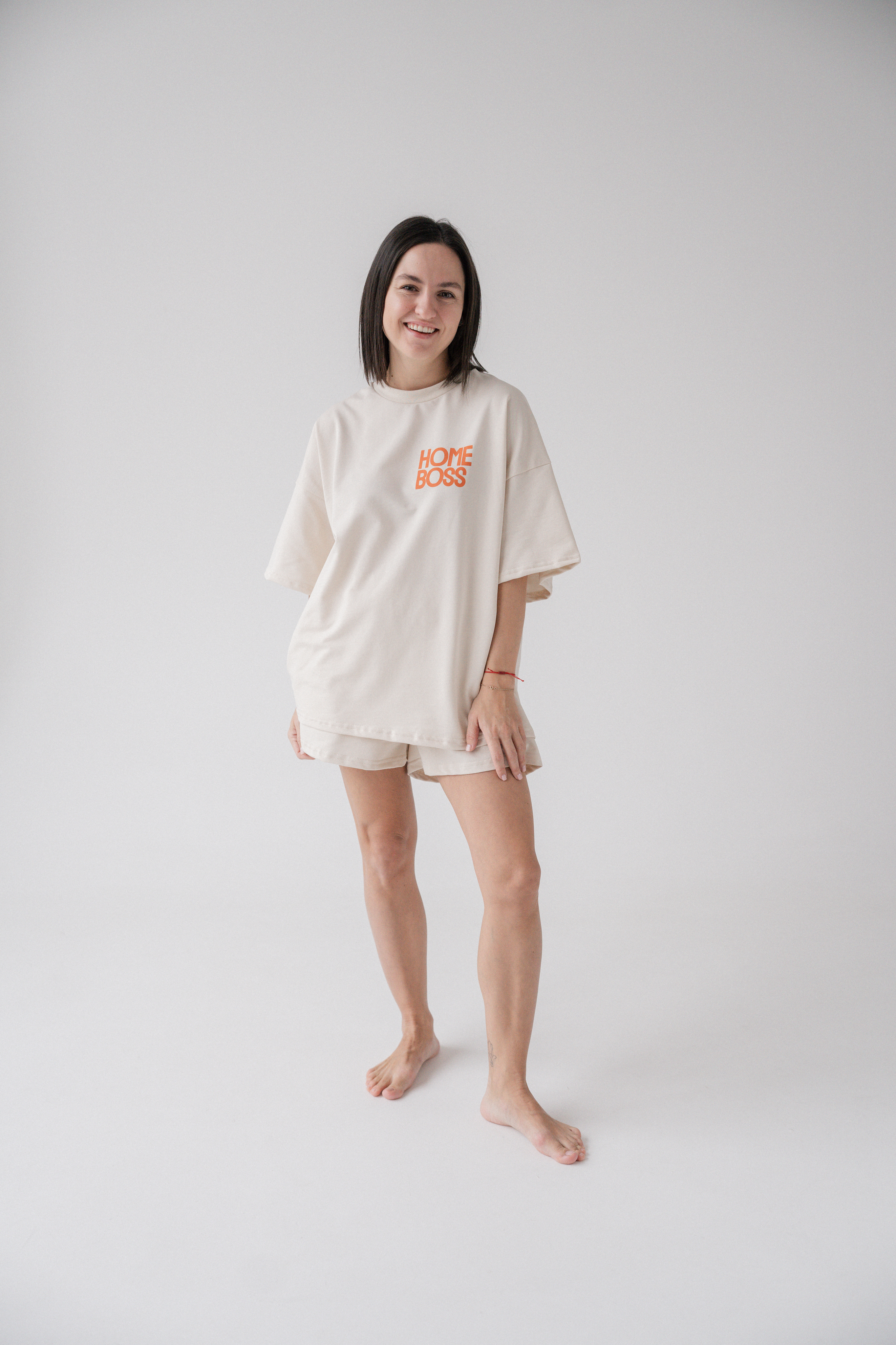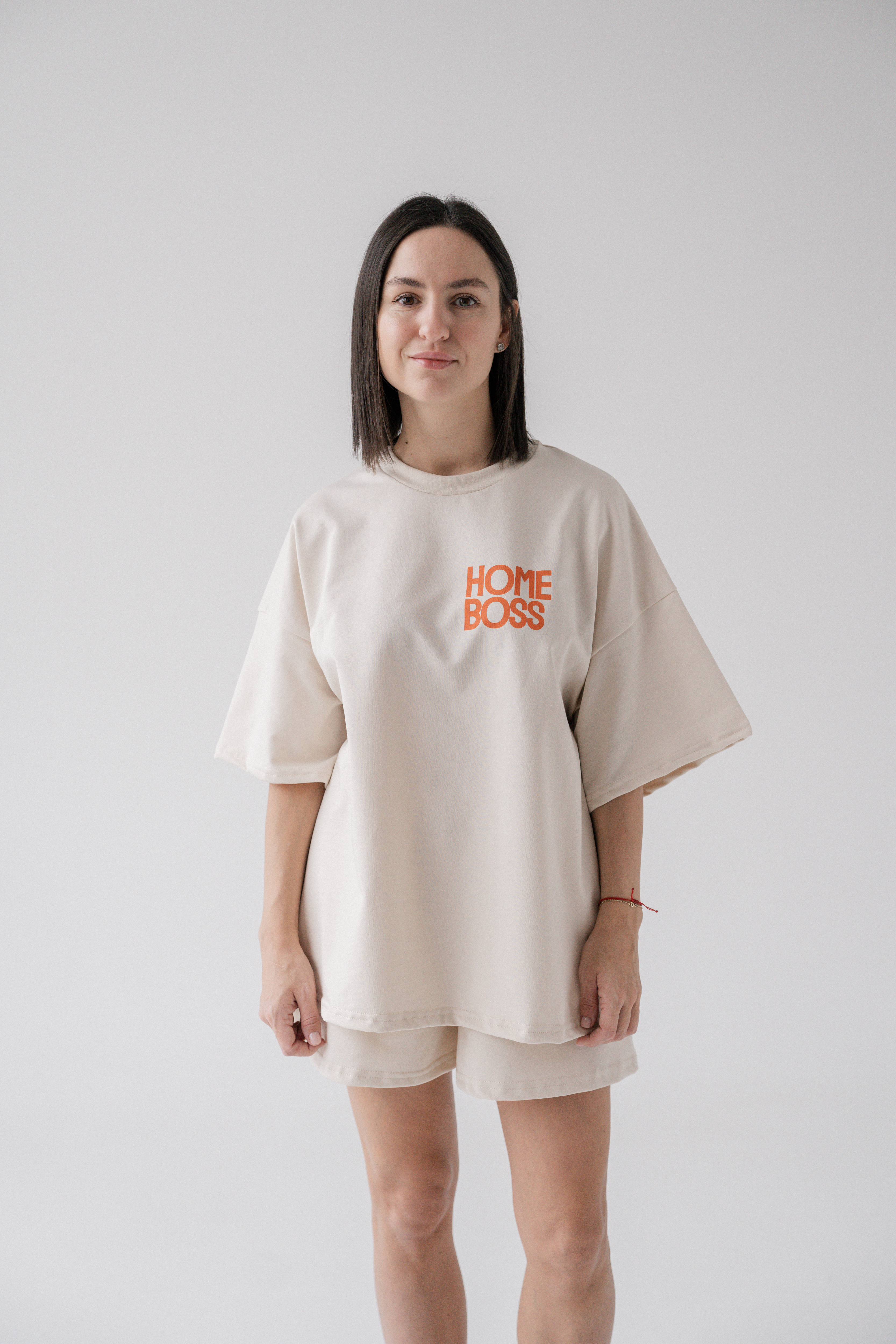 Свободная оверсайз-посадка, мягкий трикотаж и яркий акцент HOME BOSS — для максимального уюта и настроения дома.